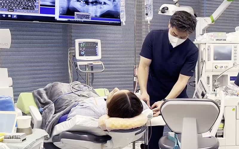 オールオン4クリニックでは、少しの痛みでも苦手な方や嘔吐反射がある患者様でも安心して治療を受けていただけるように、全身麻酔、静脈内鎮静の麻酔下での治療を行っております。