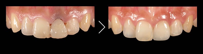 事故で前歯部を欠損した症例